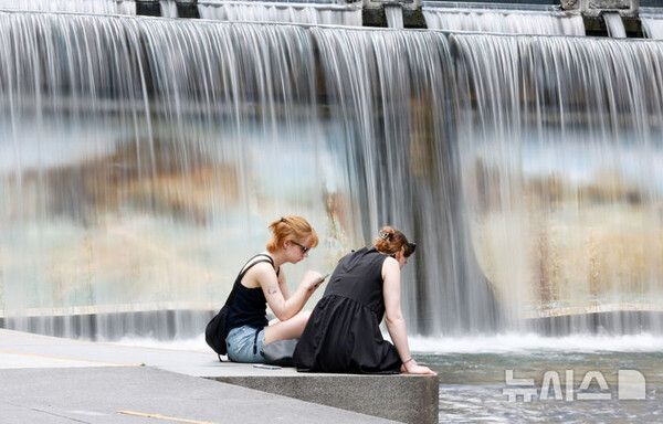 [서울=뉴시스] 더위가 그친다는 절기상 처서를 하루 앞두고 찜통 더위가 이어지고 있는 22일 서울 종로구 청계천에서 외국인 관광객들이 더위를 식히고 있다.