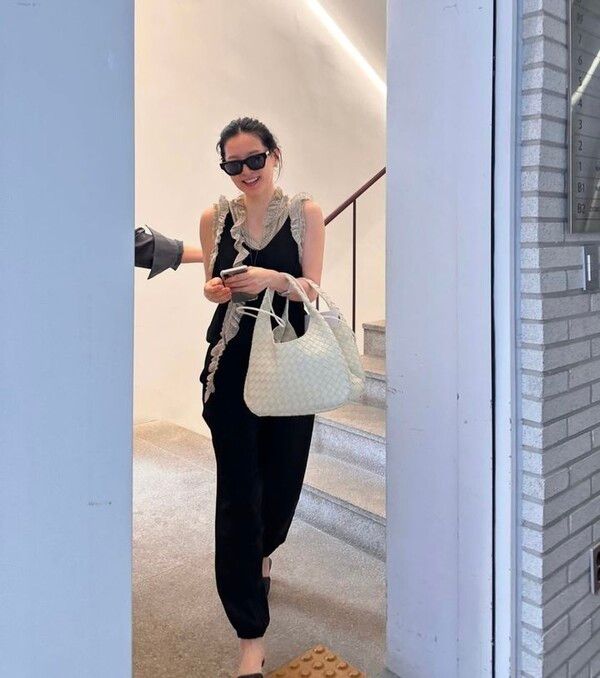 사진 속 이영애는 올블랙 패션을 소화했다.