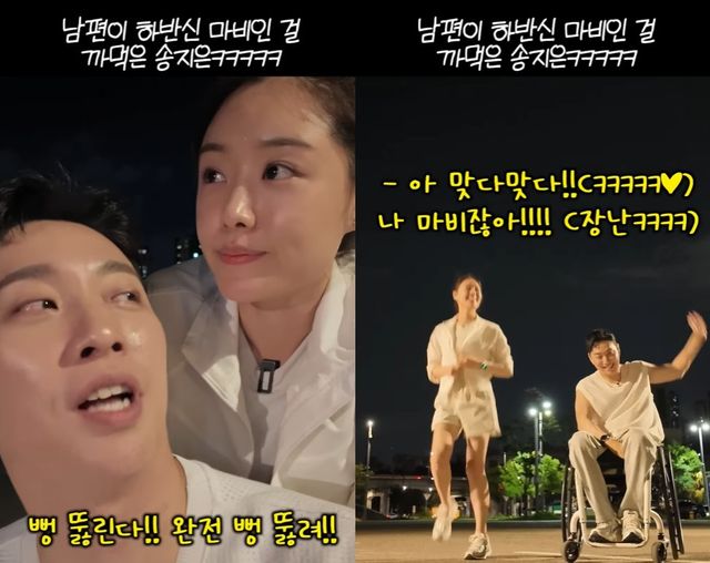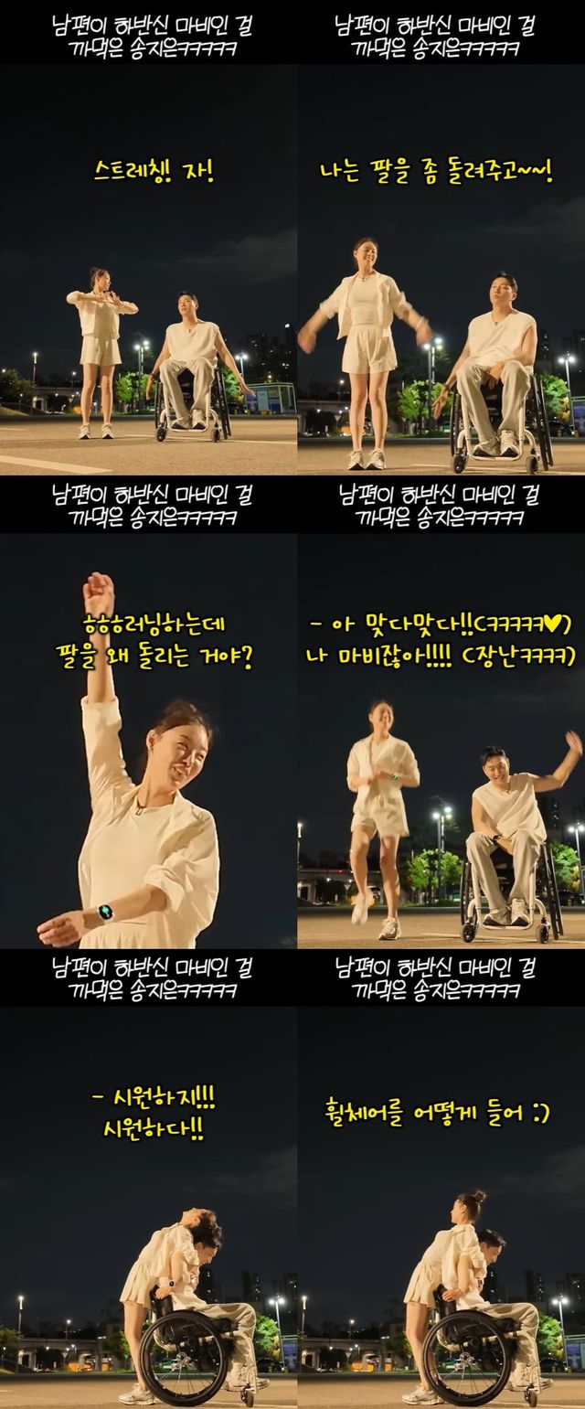 공개된 영상에는 '남편이 하반신 마비인 걸 까먹은 송지은'이라는 부제가 적혀있어 눈길을 끈다.