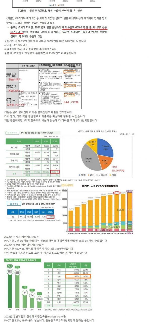 이후로도 일본 IP 컨텐츠 산업의 규모나 해외인기에 대한 글이 올라오면