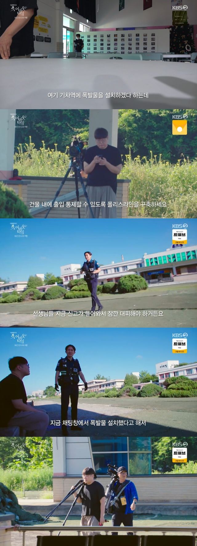 경찰관들은 "건물 내에 출입 통제할 수 있도록 폴리스라인을 구축해라", "안에 사람들이 있는지 확인해서 다 대피시켜라. 지금 신고 내용은 건물 안에 (설치가) 돼 있다는 거"라며 급박하게 상황을 주도했다.