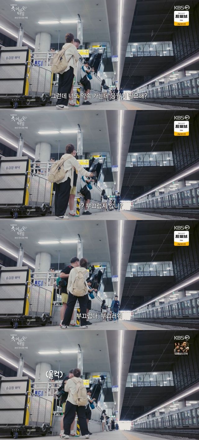 동료 VJ가 "너도 이거 가는데 응원이 필요하냐"고 묻자 "부끄럽지 않냐. 부끄럽다, 부끄러워"라고 말하며 눈물을 보인 그는 울컥한 마음으로 기차에 올라탔다.