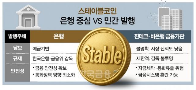 은행이 발행을 주도하면 자본력, 리스크 관리 능력, 감독 체계 등 신뢰에 필요한 조건을 충족할 수 있다. 소비자 보호, 자금세탁 방지, 금융 안정성을 담보할 수 있다는 장점도 있다.