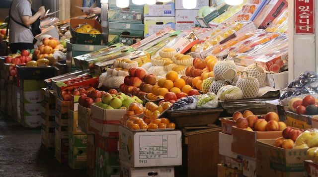 한 전통시장에 있는 과일 가게 모습. 기사 이해를 돕기 위한 자료 사진입니다. 가을 대표하는 한국 과일이 출하를 시작해 관심을 끌고 있습니다. / 연합뉴스