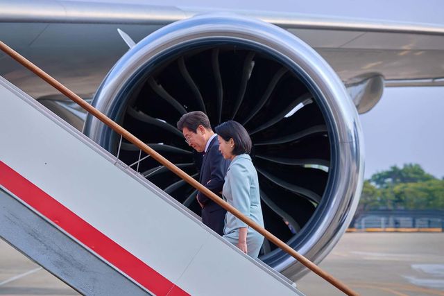 이재명 대통령과 부인 김혜경 여사가 주요7개국(G7) 정상회의 참석을 위해 지난 6월 16일 오후 경기도 성남 서울공항을 통해 출국하고 있다. / 이재명 대통령 인스타그램