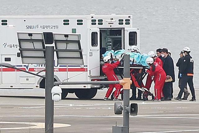 흉기에 찔린 이재명 대통령(당시 더불어민주당 대표)가 2024년 1월 2일 오후 서울 동작구 노들섬에 헬기를 통해 도착해 서울대병원으로 이송되고 있다. / 뉴스1