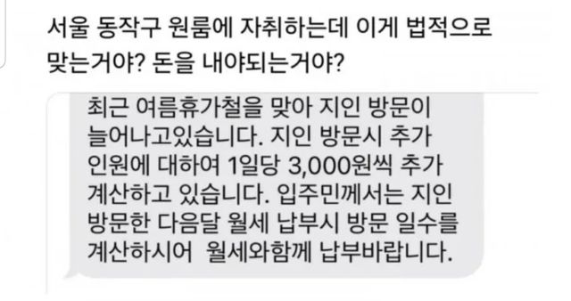 " 휴가철 지인 방문시 하루당 3천원 내라고 함 "