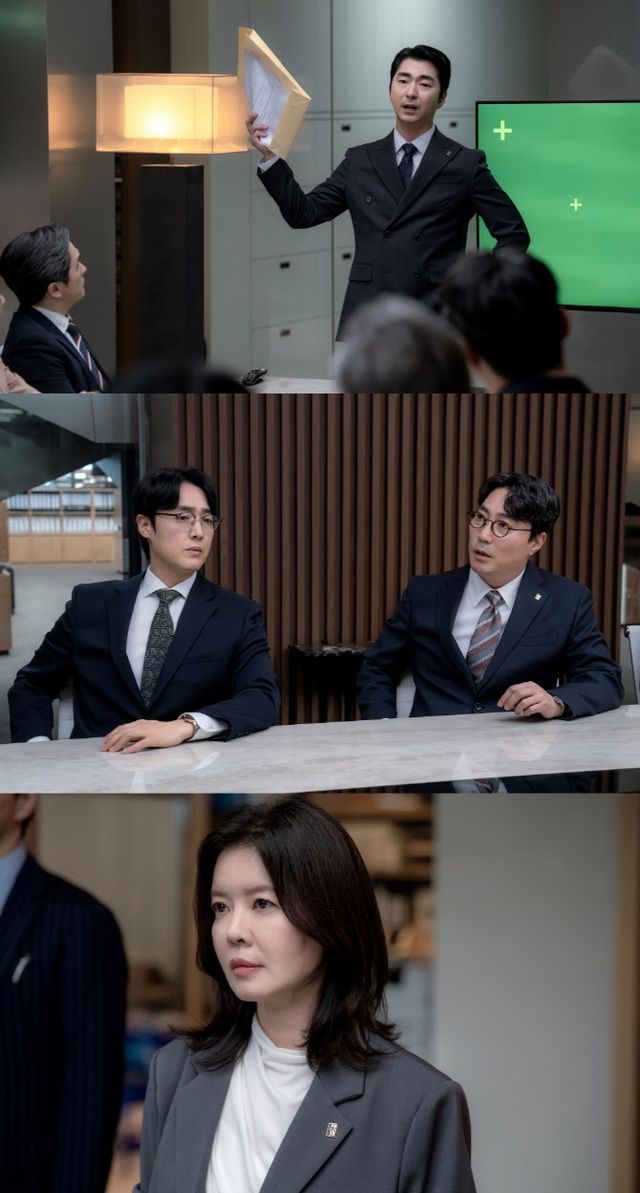 특히 고태섭이 서류봉투를 든 채 기세등등하게 나서고 있어 더욱 의아함이 커지는 터. 이를 듣던 변호사들 사이로 권나연까지 등장하며 긴장감이 최고조로 달하고 있다. 이처럼 한 치도 물러섬 없는 팽팽한 기싸움 속 위태로워진 윤석훈의 운명에 관심이 집중된다.