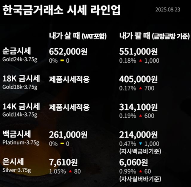순금(24K) : 매입가 65만 2000원 / 매도가 55만 1000원