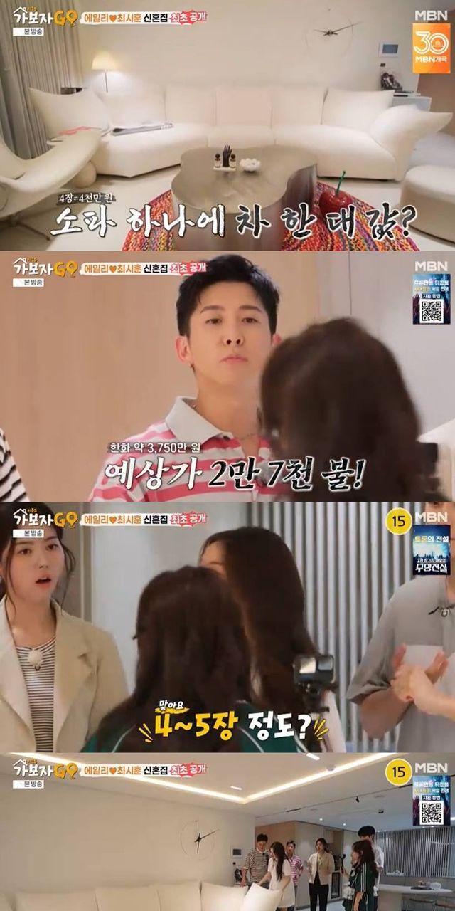 에일리는 "맞아요. 4~5장 정도"라고 밝혀 감탄을 자아냈다. 에일리는 소파에 대해 "천도 비싸고 이게 다 모듈이라서 피스를 다 고를 수가 있다. 이게 좋은 게 등받이가 움직인다"며 몸에 맞춰 각도 조절할 수 있다며 시범을 보였다.
