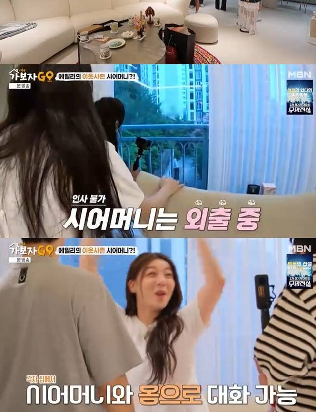 소파에 힘을 준 이유에 대해 에일리는 "거실에 들어오면 소파가 주는 위압감이 있지않냐"라고 설명했다. 이어 "앞동에는 시어머니가 산다. 여기 시훈씨가 살던 동네"라고 이야기했다.