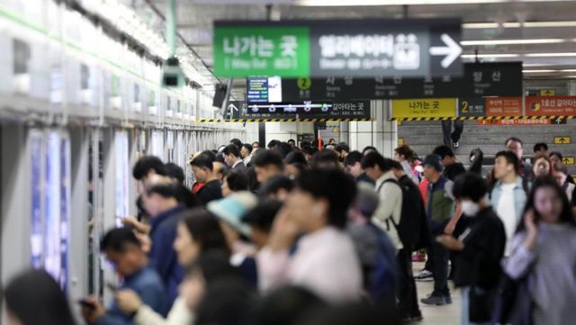부산 부산진구 도시철도 환승역인 서면역이 출근길 시민들로 붐비고 있다. / 뉴스1