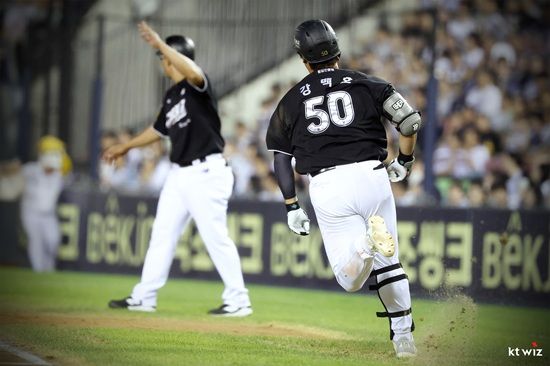 KT는 5회초 선두타자 장준원의 스트레이트 볼넷과 허경민의 희생 번트로 1사 2루 기회를 잡았다. 후속타자 김민혁이 중견수 뜬공을 때린 뒤 2사 1, 2루 기회에선 강백호가 루킹 삼진을 당했다.