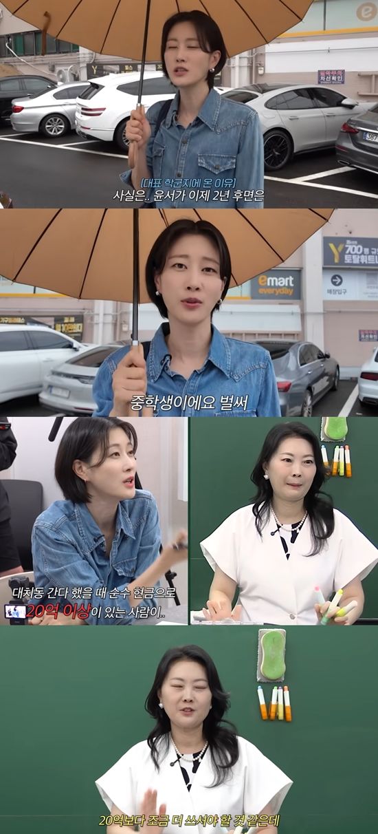 설명을 들은 이현이는 "학군지로 언급된 곳을 사려면 순수 현급으로만 막 15억씩 있어야 된다는 얘기고, 대치동 간다고 했을 때는 순수 현금으로 20억 있는 사람이"라고 말하자, 부동산 전문가는 "20억보다 조금 더 쓰셔야 할 것 같다"라고 조언했다.