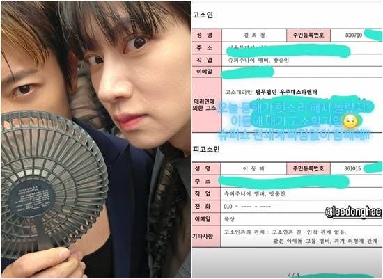 해당 문서에는 고소인 김희철, 피고소인 이동해가 명시돼 있었고, 고소대리인으로 '법무법인 우주대스타엔터'라는 이름까지 적혀 있어 실제 고소장처럼 보였다. 또 고소인과 피고소인의 관계는 "같은 아이돌 그룹 멤버, 과거 의형제 관계라고 기재돼 눈길을 끌었다.