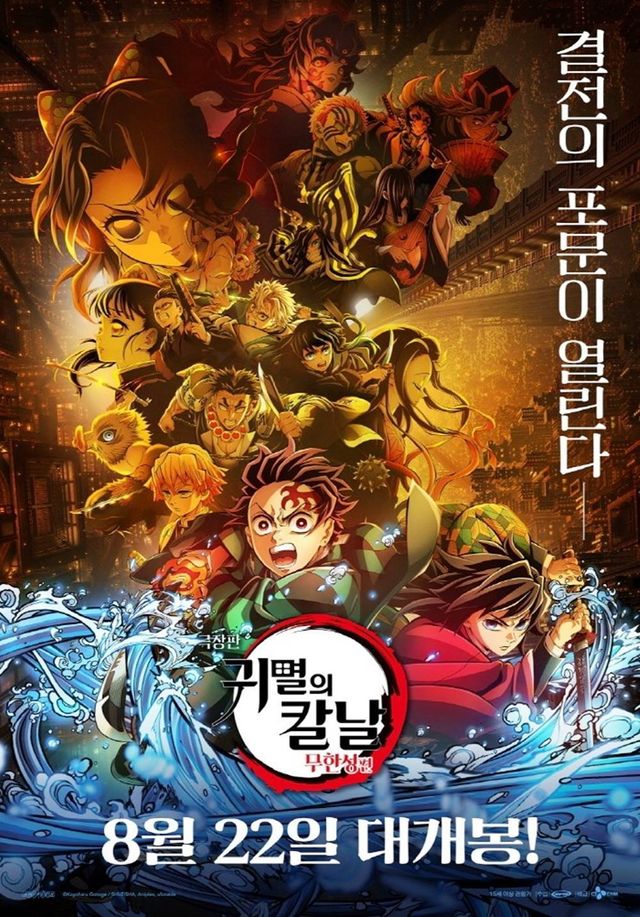 영화 '극장판 귀멸의 칼날: 무한성편' 포스터. 24일 영화진흥위원회 영화관입장권 통합전산망에 따르면 영화 '극장판 귀멸의 칼날:무한성편'은 개봉일인 지난 22일 54만 3900여 명, 개봉 이튿날인 23일 60만 6300여 명이 관람하며 누적 관객 수 총 115만 명을 넘겼다. 영화 '극장판 귀멸의 칼날:무한성편'이 개봉 이틀 만에 새운 해당 기록은 올해 100만 관객을 넘긴 영화 가운데 가장 빠른 속도다. / 애니맥스브로드캐스팅코리아 제공