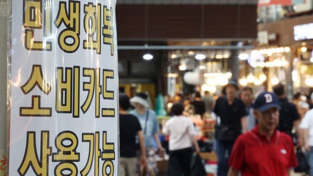 서울 동대문구 청량리종합시장에 민생회복 소비쿠폰 관련 안내문이 붙어 있다. / 연합뉴스