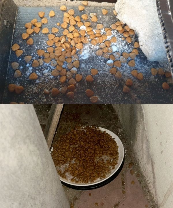 전문가는 사진 상으로 봤을 때 사료그릇 속 가루가 ‘쥐약’이나 ‘살충제’ 따위의 물질이라고 판단했다.
