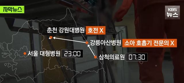 결국 춘천 강원대병원으로 전원됐으나 아이의 상태는 계속 악화됐고, 밤늦게 서울의 대형 병원으로 이송됐다. 삼척에서 서울까지 15시간 넘게 330km를 이동했지만, 그 과정에서 적절한 치료를 받지 못한 셈이다.