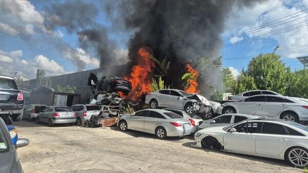 뉴시스 보도에 따르면, 차량에서 발생한 불은 인근 폐차장으로 옮겨붙으며 규모가 확대됐다.