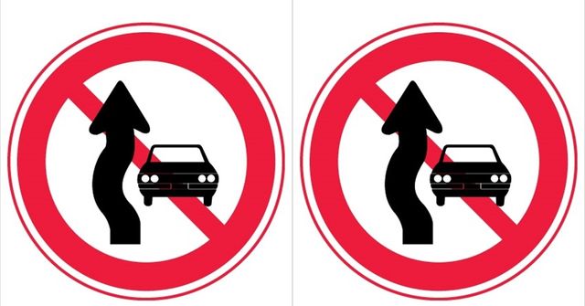 앞지르기 금지 표지판은 보통 원형 모양의 흰색 바탕 안에 검은색으로 표시된 차량 그림이 그려져 있다. 자동차 옆에 검은색 구불구불한 화살표는 추월하려는 형태를 의미하며 여기에 빨간색 금지 표시가 있어 해당 구간에서 앞지르기가 금지됨을 직관적으로 이해할 수 있도록 했다. 그러나 일부 운전자들은 해당 표지판의 의미를 헷갈려 하는 경우도 있다.