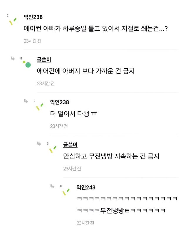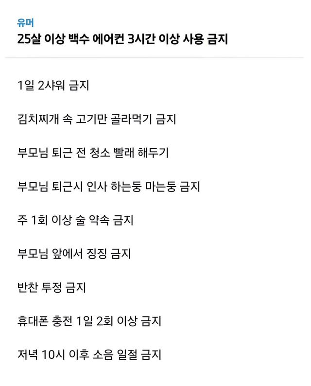 25이살 이상 백수 에어컨 3시간 이상 사용 금지