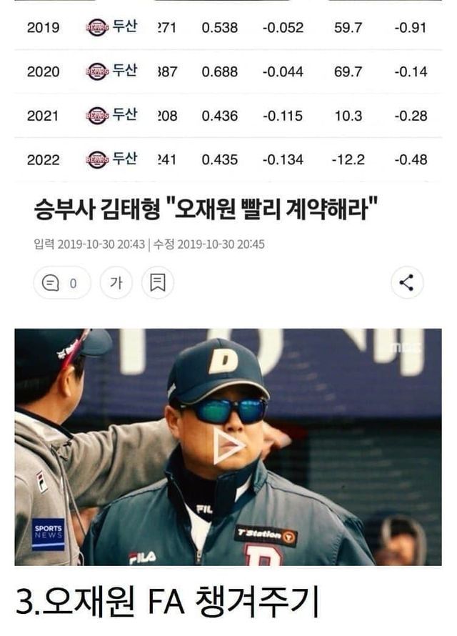 오히려 최주환 거르고 오재원 쓰느라 두산 전력 약화시킴ㅋㅋㅋㅋ