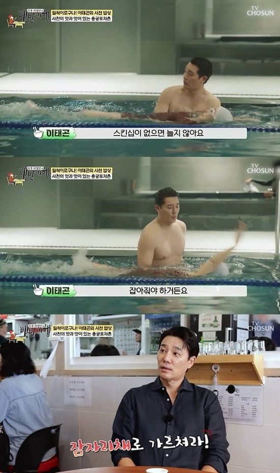 이태곤은 "골프를 치고, 가끔 등산도 한다. 혼자 야간 산행도 한다"고 얘기했고, "수영도 잘 하냐"는 허영만의 말에 "수영이 전공이었다"고 답했다.