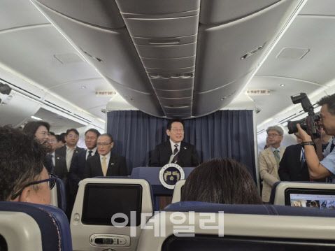 24일(현지시간) 미국으로 향하는 전용기 안에서 열린 약식 기자간담회에서 이 대통령은 “한반도의 비핵화는 진보·보수를 가리지 않고 대한민국 정부가 일관되게 견지해온 입장”이라며 “완전한 비핵화는 평화와 안정, 더 나아가 세계 평화를 위해 반드시 가야 할 길”이라고 말했다.