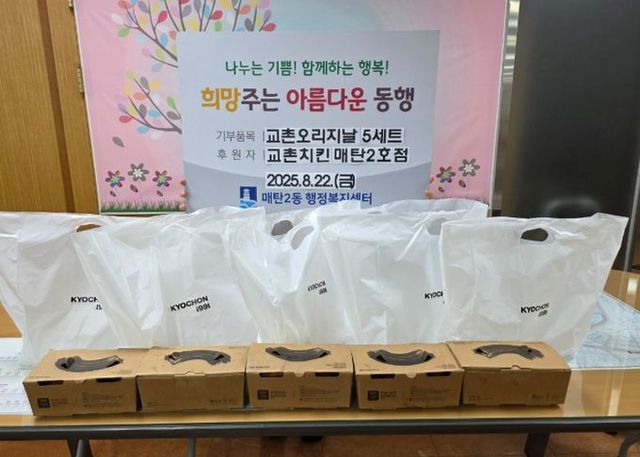 교촌치킨 매탄2호점 대표는 “작은 나눔이지만 도움이 필요한 분들께 기쁨이 되길 바란다”며 “앞으로도 협약을 바탕으로 꾸준히 지역사회와 함께하겠다”고 전했다.