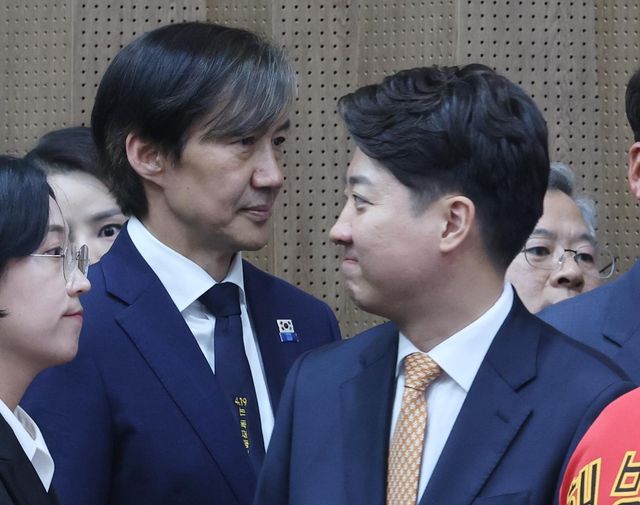 이준석 개혁신당 대표(오른쪽)와 조국 조국혁신당 혁신정책연구원장. / 뉴스1