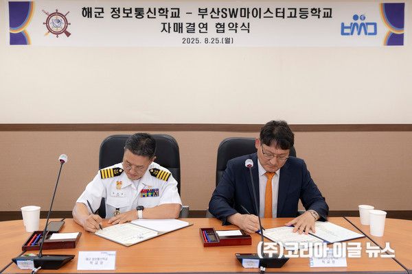 해군교육사령부 정보통신학교(학교장 장재훈 대령, 이하 ‘정통교’)는 8월 25일 특성화 고교인 부산 소프트웨어 마이스터고교(이하 ‘부산 S/W 마이스터고’)와 자매결연 협약을 체결했다.