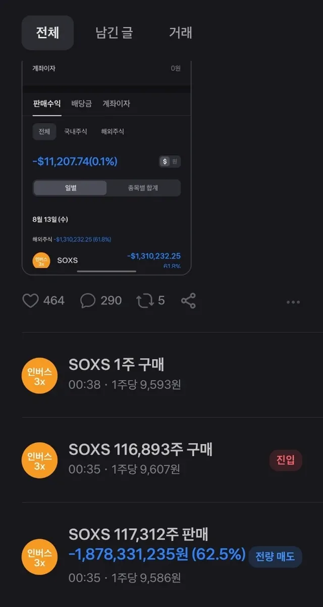 soxs -19억손절후 다시 재진입하고 다시 물려버림 ㅋㅋ