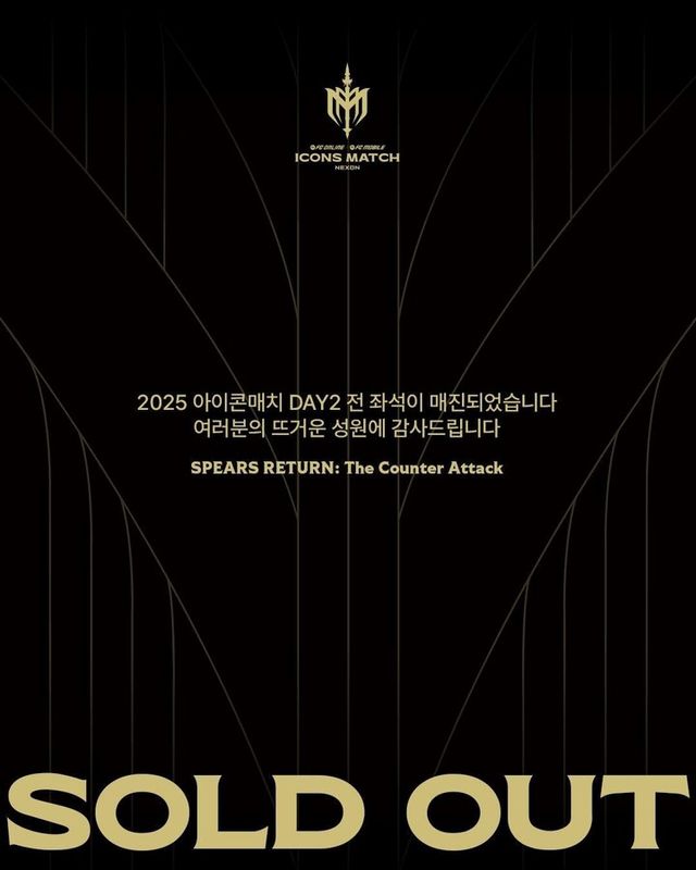 [이뉴스투데이 백연식 기자] 넥슨은 9월 14일 열리는 ‘2025 아이콘매치’의 메인 매치티켓 총 6만석 규모가 모두 매진됐다고 25일 밝혔다.