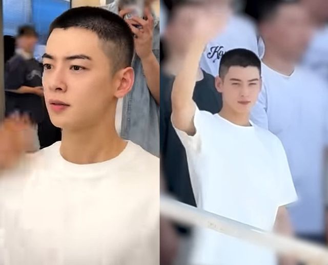 (엑스포츠뉴스 오승현 기자) 차은우가 입대 전 삭발의 순간을 공개했다.