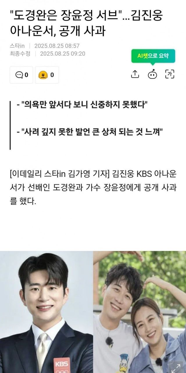 김진웅) "난 도경완 선배처럼 못 산다. 선배에게 결례인 말일 수도 있지만 누군가의 서브로는 못 산다"