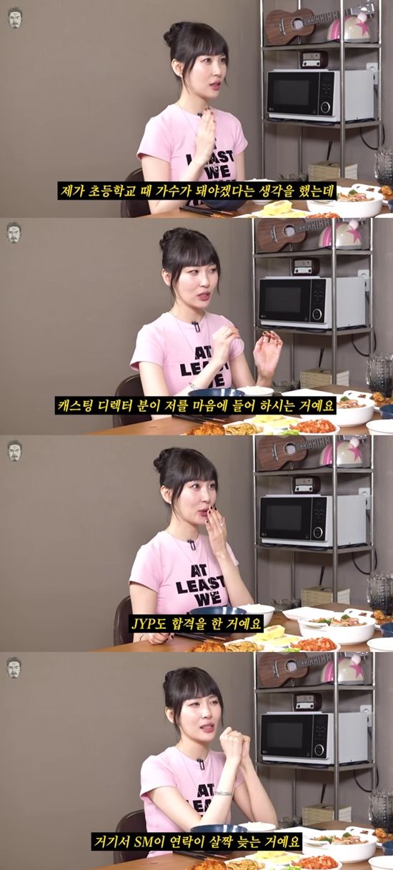 선미는 "(오디션에서) 보아 언니 노래만 불렀는데 JYP도 합격했다. SM에서 연락이 살짝 늦어서 왜 적극적이지 않지 싶었다. 조금 더 적극적이었던 JYP에 입사하게 됐다"고 설명했다.