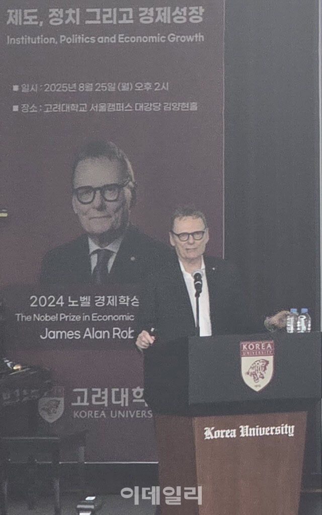 한편, 로빈슨 교수는 지난해 제도의 형성과 국가 번영에 미치는 영향에 대한 연구로 대런 아세모글루·사이먼 존슨 매사추세츠공대(MIT) 교수와 노벨 경제학상을 공동 수상했다. 아세모글루 교수와 ‘국가는 왜 실패하는가’라는 책을 집필했다.