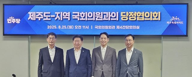 제주특별자치도는 25일 국회 의원회관에서 지역 국회의원들과 당정협의회를 열고 내년도 국비사업과 국정과제 후속 대응 등 주요 현안에 대한 협력 방안을 논의했다.