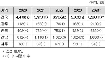 (표)최근 5년간 호남권 쯔쯔가무시증 환자 발생 현황