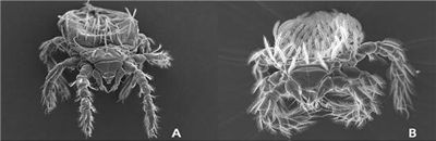 (쯔쯔가무시균 매개 주요 털진드기) A : 활순털진드기, B : 대잎털진드기