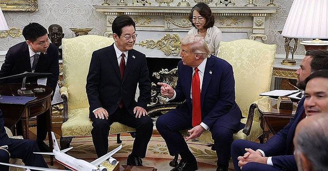 이재명 대통령이 25일(현지시간) 미국 워싱턴 DC 백악관 오벌오피스에서 도널드 트럼프 미국 대통령과 한미 정상회담을 하고 있다 / 연합뉴스