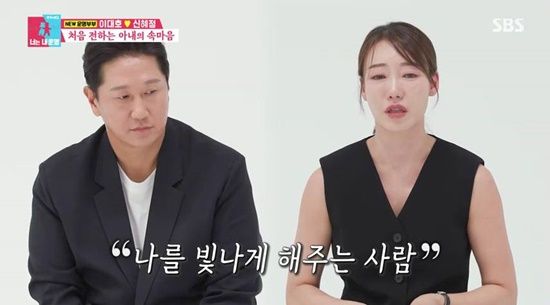 이에 신혜정은 "남편은 항상 우리는 같이 성장해왔다 하는데"라며 말을 이어가다 감정이 복받친 듯 눈물을 왈칵 쏟았다. 이어 "제가 크게 예쁜 사람도 아니고 뭐가 특별히 잘난 것도 아닌데 늘 저희 남편은 예쁘다, 자기가 최고라고 한다. 늘 저를 먼저 앞에 세워준다. 나를 빛나게 해주는 사람이다. 이 자리를 빌려 고맙다고 말하고 싶다"고 속마음을 밝혔다.