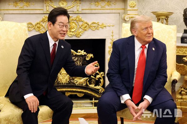 이재명 대통령은 이날 낮 12시32분께 미국 워싱턴DC 백악관을 방문, 세시간 가까이 머무르며 트럼프 대통령과 첫 정상회담을 진행했다.