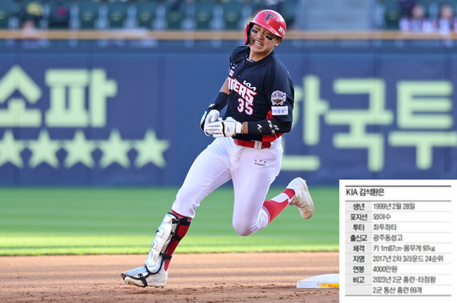 김석환은 최근 KIA 타선의 희망이다. 지난 20일 1군에 재등록된 뒤 치른 첫 5경기 타율이 0.357(14타수 5안타). 이 기간 출루율(0.438)과 장타율(0.571)을 합한 OPS가 1.009에 이른다. 이범호 KIA 감독이 '선발 기용 의사'를 공언할 정도로 코칭스태프의 신뢰가 탄탄하다. 팀이 연전연패를 거듭한 상황에서도 가공할 만한 화력을 유지했다.