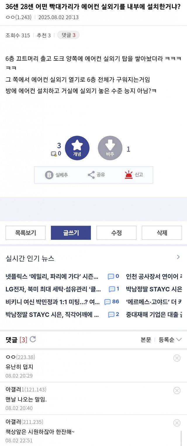 실외기를 내부에 탑 쌓아놓음