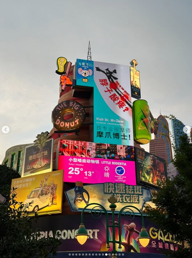 파크는 ▲미키 애비뉴 ▲상하이 디즈니랜드만의 독창적인 ‘어드벤처 아일’ ▲픽사 애니메이션의 즐거움을 담은 토이스토리 랜드 ▲미래형 롤러코스터 ‘트론 라이트사이클 파워 런’ ▲대규모 해상 전투를 체험할 수 있는 ‘캐리비안의 해적 – 전설이 되다’ ▲2023년 12월 20일 세계 최초로 문을 연 ‘주토피아’ 테마존 등으로 구성돼 있다. 안소희가 찍은 사진 속 신호등과 간판은 바로 이 주토피아 구역에서 만날 수 있다.