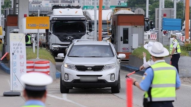지난 6월 톨게이트에서 진행된 체납 및 과태료 체납차량 합동 단속 모습 / 뉴스1