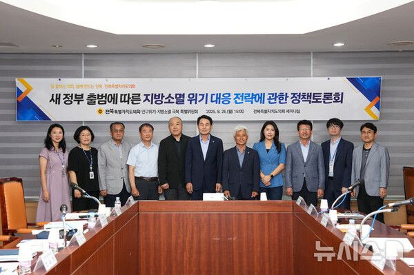 뉴시스 보도에 따르면, 전북특별자치도의회 인구위기·지방소멸 극복 특별위원회(위원장 전용태)는 '새 정부 출범에 따른 지방소멸 위기 대응 전략에 관한 정책토론회'를 개최했다고 26일 밝혔다.