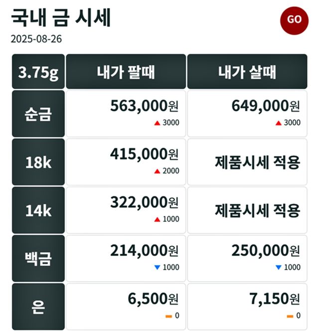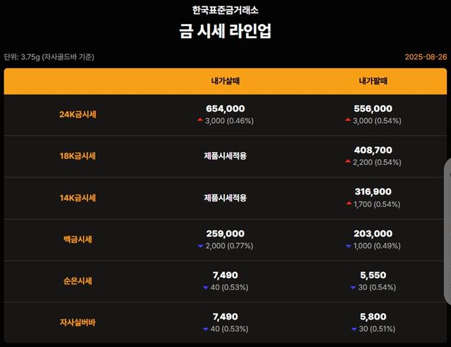 순금(24K) : 매입가 64만 9000원 / 매도가 56만 3000원